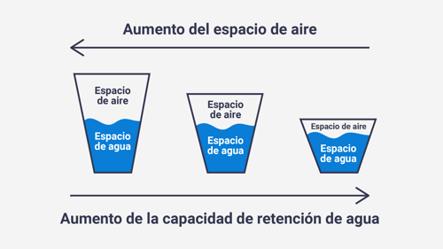 En cultivos como las berries, es fundamental mantener una proporción equilibrada entre partículas orgánicas e inorgánicas en el sustrato. Los poros grandes facilitan el drenaje rápido y una mayor aireación, mientras que los poros más pequeños retienen más humedad pero tienen una menor capacidad de aireación. Es importante tener en cuenta que la textura del sustrato puede cambiar con el tiempo, especialmente en el caso de sustratos orgánicos, lo que puede afectar su capacidad de aireación y retención de humedad.